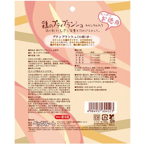 ペッツルート 素材メモ 鶏のプティブランシュ お徳用 10本入 犬 おやつ 関東当日便