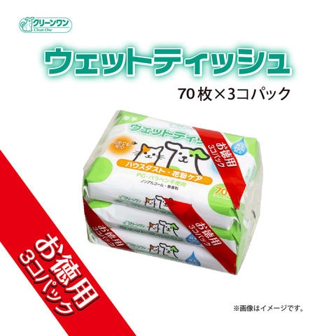 クリーンワン ウェットティッシュ 花粉ケア 70枚×3個 犬 猫 ペット 犬用品 猫用品 ペット用品 お手入れ ウエットティッシュ おでかけ お出かけ 汚れ 花粉 いぬ イヌ DOG Cat ネコ ねこ 小動物 両生類 爬虫類 うさぎ モルモット 兎 ウサギ チンチラ デグー ハムスター ハリネズミ 掃除 おそうじ お掃除 ハウスダスト 除菌 お徳用 無香料 ノンアルコール 舐めても安心 なめても安心 厚手 ヒアルロン酸 kak 20250909 y25m09