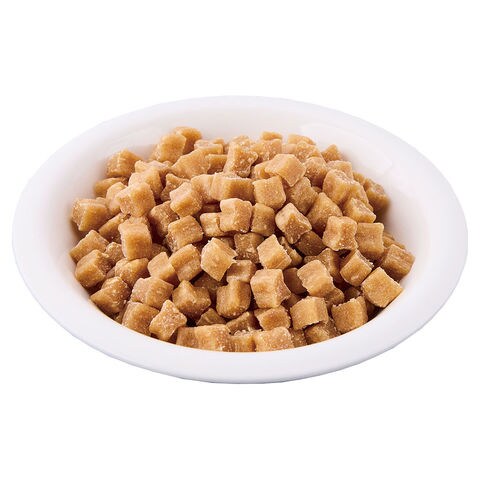 原材料 肉類(鶏、鶏レバー)、小麦粉、糖類、とうもろこし、大豆たん白、おから、小麦たん白、オリゴ糖、コラーゲン、地鶏エキス、酵母、乳酸菌(KH-2株(熱処理済み))、かぼちゃ、プロピレングリコール、ミネラル類(リン、カルシウム、ナトリウム、塩素、亜鉛、銅、ヨウ素、コバルト)、ソルビトール、メチオニン、保存料(ソルビン酸K、デヒドロ酢酸Na)、ポリリン酸Na、ビタミン類(A、B2、B12、D、E、コリン、パントテン酸)、リノレン酸