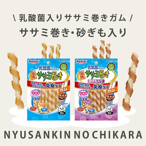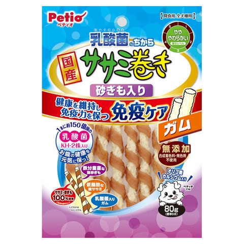 メーカー画像 ペティオ 乳酸菌のちから ササミ巻き 砂ぎも入り 80g 4903588143854 20250730 y25m08 ktym いぬ イヌ 犬 ドッグ DOG 愛犬 ドッグフード フード ご飯 ごはん 餌 えさ エサ イヌフード いぬフード 犬フード 乳酸菌 免疫ケア 免疫 お腹 健康維持 健康 維持 間食 おやつ ササミ ささみ 鶏肉 鶏 肉 チキン 砂ぎも 砂肝 肝 巻き オリゴ糖 ガム 低脂肪 骨の健康 骨 カルシウム カルシウム配合 合成着色料不使用 発色剤不使用 全犬種 国産 日本産 日本
