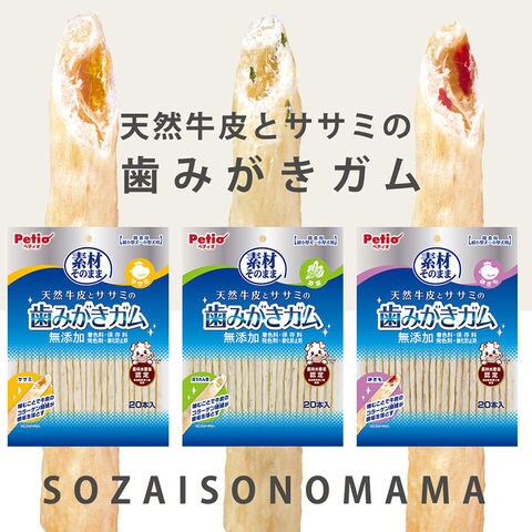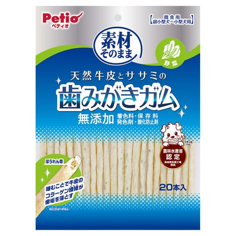 | ペティオ 素材そのまま 天然牛皮とササミの歯みがきガム 野菜 20本 | |