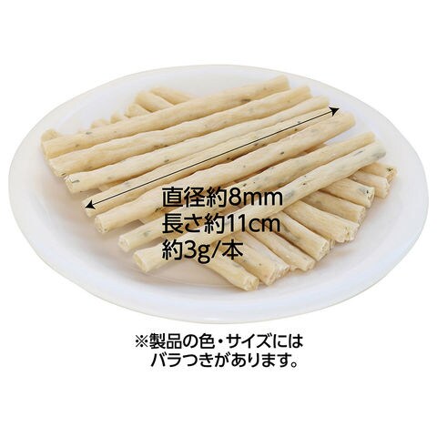 | 特長 | ●コラーゲン繊維豊富な天然牛皮を使用した犬用おやつです。 ●かむことでコラーゲン繊維が汚れをからめて落とします。 ●旨みたっぷりのササミ入りだからおいしくデンタルケアできます。 ●着色料、保存料、発色剤、酸化防止剤不使用です。 ●栄養豊富な野菜入りです。 |