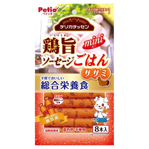 メーカー画像 ペティオ デリカテッセン 総合栄養食 鶏旨 ミニソーセージごはん ササミ 8本入 4903588145780 20250730 y25m08 ktym いぬ イヌ 犬 ドッグ DOG 愛犬 ドッグフード フード ご飯 ごはん 餌 えさ エサ イヌフード いぬフード 犬フード 栄養食 ミニ ソーセージ 手軽 鶏ささみ 鶏ササミ とりささみ 鶏肉 鶏 肉 チキン 食べきりサイズ 小型犬 シニア犬 高齢犬 シニア 高齢 柔らかい やわらかい トッピング 投薬補助 おやつ感覚 着色料不使用 全犬種用 全犬種 間食 おやつ
