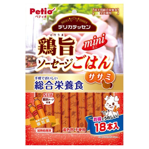 メーカー画像 ペティオ デリカテッセン 総合栄養食 鶏旨 ミニソーセージごはん ササミ 18本入 4903588145803 20250730 y25m08 ktym いぬ イヌ 犬 ドッグ DOG 愛犬 ドッグフード フード ご飯 ごはん 餌 えさ エサ イヌフード いぬフード 犬フード 栄養食 ミニ ソーセージ 手軽 鶏ささみ 鶏ササミ とりささみ 鶏肉 鶏 肉 チキン 食べきりサイズ 小型犬 シニア犬 高齢犬 シニア 高齢 柔らかい やわらかい トッピング 投薬補助 おやつ感覚 着色料不使用 全犬種用 全犬種 間食 おやつ 大容量 大容量タイプ 大容量パック