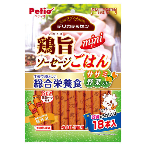 メーカー画像 ペティオ デリカテッセン 総合栄養食 鶏旨 ミニソーセージごはん ササミ野菜入り 18本入 4903588145810 20250731 y25m08 ktym いぬ イヌ 犬 ドッグ DOG 愛犬 ドッグフード フード ご飯 ごはん 餌 えさ エサ イヌフード いぬフード 犬フード 栄養食 ミニ ソーセージ 手軽 鶏ささみ 鶏ササミ とりささみ 鶏肉 鶏 肉 チキン 食べきりサイズ 小型犬 シニア犬 高齢犬 シニア 高齢 柔らかい やわらかい トッピング 投薬補助 おやつ感覚 着色料不使用 全犬種用 全犬種 間食 おやつ 大容量パック 大容量