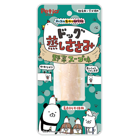| ペティオ ハッスルおやつ研究所 ドッグ 蒸しささみ 野菜スープ味 1本入 | |