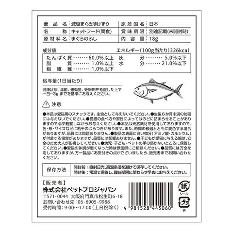 メーカー画像 ペットプロ 減塩まぐろ薄けずり 18g入り 4981528445060 20250711 y25m09 ktym 減塩 まぐろ 鮪 マグロ 魚 フィッシュ 薄けずり 薄い 削り 枕崎産 健康 ねこ 猫 ネコ CAT 愛猫 キャット キャットフード フード ねこフード ネコフード 猫フード 間食 おやつ ふりかけ トッピング ねこ用おやつ 猫用おやつ ネコ用おやつ スナック 削り節 国産 日本産