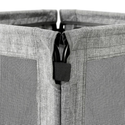 | 特長 | ●簡単に組み立てができる布製のペットサークルです。 ●トイレサークルとして使用したり、パネルの増減により形状変更・サイズ変更が可能です。 ●隙間が狭く、小型犬でも脱出しにくい構造です。また、愛犬が見えやすく、ぶつかってもケガをしにくくなっています。 ●カバーは本体から外して洗濯機で洗えるので、お手入れが簡単です。 |