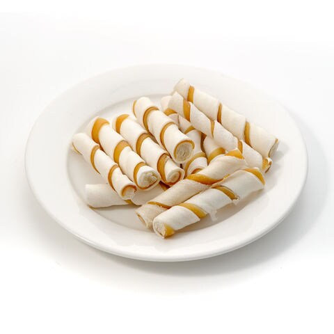 ●天然牛皮と鶏ササミで作った色々な細さにカットした牛皮と、ササミをねじり合わせた複雑なツイスト型ガムです。 ●天然牛皮は牛皮の強力な繊維がそのまま残っているから長持ちでさらに、噛んでいるうちに口の中の水分で柔らかくなっていくから硬すぎない硬さになります。 ●よく噛むことで、愛犬のストレス発散や、歯垢の除去に役立ちます。 ●着色料、香料、発色剤、不使用です。 ●硬さレベル:3(硬い)。 |