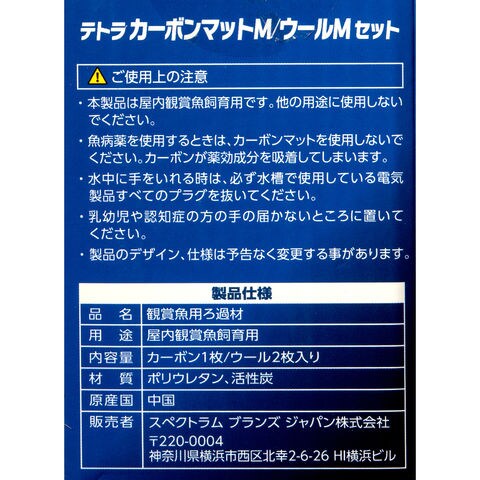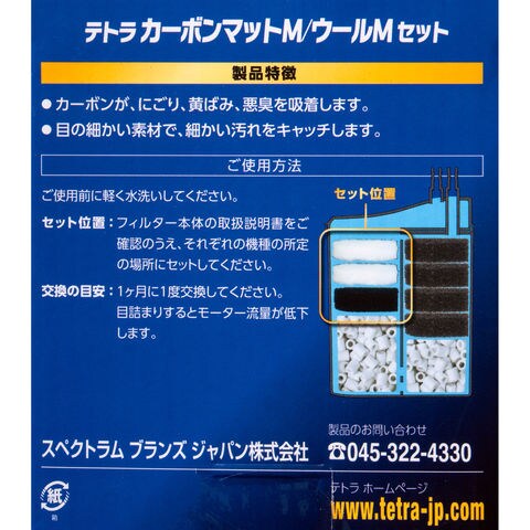 メーカー画像 アクアリウム用品 アクア用品 フィルター テトラ カーボンマットM/ウールMセット FPX/VAX60ヨウ 4571269556141 20250701 y25m07 ktym アクアリウム aqua アクア 用品 交換用 カーボンマット カーボン マット M ウール テトラ フリーパワーフィルター FPX-60 テトラ バリューAXパワーフィルター VAX-60 ごみ ゴミ キャッチ におい 臭い ニオイ 飼育水 着色汚れ 吸着 観賞魚用 観賞魚 観賞魚用ろ過材 ろ過材 ろ過 ポリウレタン 活性炭 悪臭
