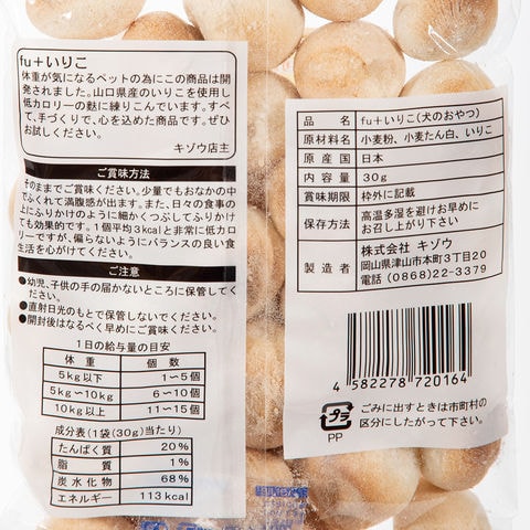 fu+いりこ 30g 犬 おやつ 4582278720164 犬フード ドッグフード ふ fu いりこ 低カロリー 魚素材 クッキー ボーロ 国産 天然 キゾウ 高タンパク質 高タンパク タンパク質 低脂質 脂質 カルシウム ダイエット 減量 満腹感 犬おやつ 犬用おやつ 犬用 トリーツ スナック 麩ふ 麩菓子 ふがし kizow 天然の甘味 サクッ サクサク 手作り 手づくり 日本産 無添加 20250702 y25m07 ngtk