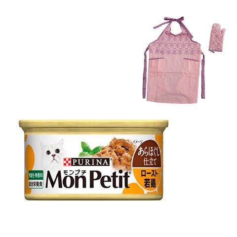 モンプチ 缶 あらほぐし仕立て ロースト若鶏 85g×24 エプロン・ミトンセットのおまけつき 関東当日便