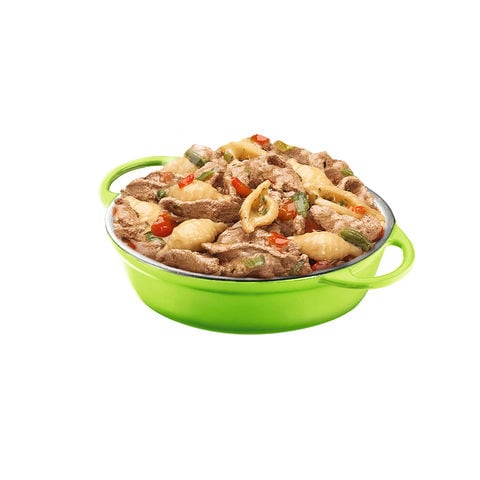 | 原材料 | 肉類(チキン、鶏レバー、ラム、ビーフ等)、野菜類(赤パプリカ、ほうれん草)、パスタ、植物性タンパク、チコリー繊維、ビートパルプ、ガーリックパウダー、ビタミン類(B1、B5、B6、B12、D3、E、コリン、葉酸)、ミネラル類(Ca、Cl、Cu、I、K、Mg、Mn、Se、Zn)、増粘安定剤(加工デンプン、増粘多糖類)、着色料(二酸化チタン、カラメル)、EDTA-Ca・Na |
