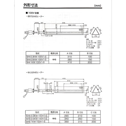 | レイシー チタンヒーター SHI型 投込み式 1KW-100V1-G 空焚き防止機能付き | |