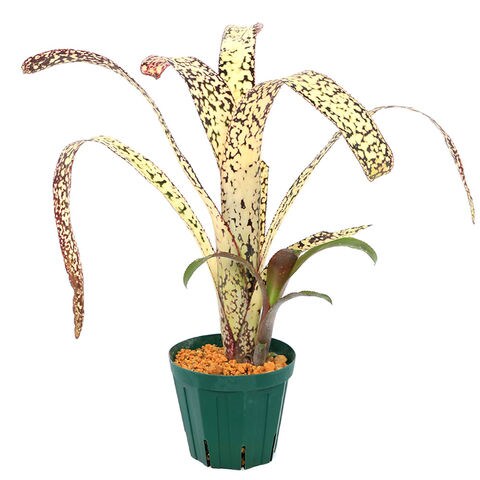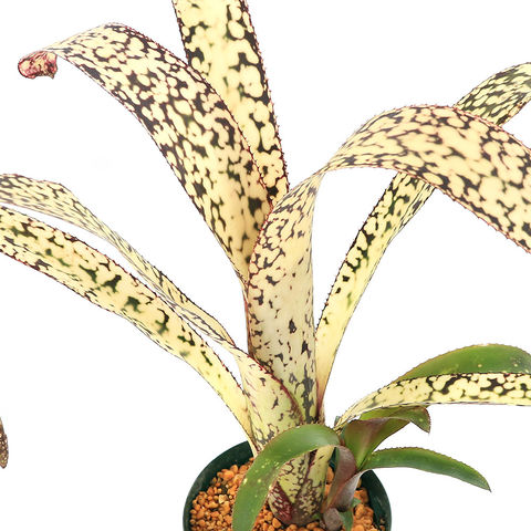 | 種類詳細 | ビルベルギアは南米に生息しているパイナップルに近い仲間で、肉厚で大きな葉を持つのが特徴です。 品種改良も多く進められており、色とりどりな品種が数多く存在します。樹木や岩などに活着して育つ着生植物で、流木やコルクなどに活着させて楽しんでいる方も多くいらっしゃいます。 本種「カサブランカ」は白い斑点が非常に美しい品種で、流通量も比較的多く、初心者の方にも人気があります。栽培も難しくなく、基本的なビルベルギアの管理を学ぶにはうってつけの品種です。 |