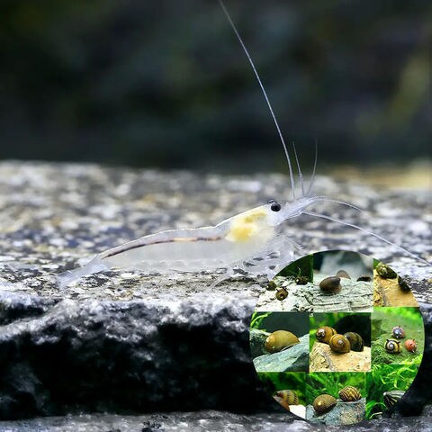 (エビ)ヤマトヌマエビ スノーホワイト(2匹)+おまかせカノコ貝(B品)(3匹) 北海道・九州航空便要保温