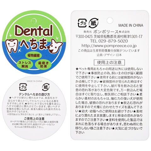 | 特長 | ●ペット用のデンタルケアができる玩具です。 ●歯みがき効果があるため、歯垢や口臭の予防にも役立ちます。 ●ヘチマの特性を活かして作られており、犬や猫の歯の汚れをしっかりと除去する効果があります。 ●天然素材であるため安全性が高いだけでなく、犬や猫にとってかむことでストレス発散や遊びの一環としても楽しめます。 ●ポンポリースのおもちゃは全商品、日本国内の公的検査機関において当社が独自に定める安全基準(※)を満たすと認定されています。「safetyマーク」は、ペットの口に入っても安全、安心なおもちゃであることを証明するマークです。 ※「STマーク」(日本玩具協会)の適合検査基準に相当。 |