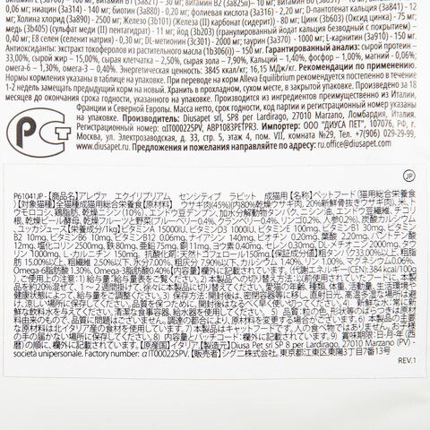 メーカー画像 アレバ エクイリブリアム センシティブ ラビット 成猫用 400g 8002754101066 猫 ねこ ネコ キャット cat CAT 猫用 ねこ用 猫フード キャットフード 猫餌 猫えさ きゃっとふーど カリカリ 食物アレルギー アレルギー ラビット ウサギ肉 ウサギ うさぎ肉 うさぎ 野菜 ベジタブル 果物 フルーツ クランベリー ブルーベリー リンゴ りんご にんじん 人参 ニンジン オメガ3脂肪酸 オメガ6脂肪酸 タウリン グルテンフリー 胃腸 下部尿路 皮膚 健康維持 消化しやすい 消化性の高い 消化性 アレヴァ ×2 2250003559465 20250731 y25m07 mikari