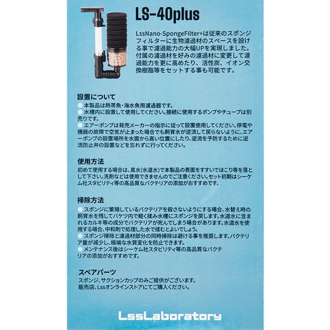 | LSS研究所 本体 Nanoスポンジフィルター LS-40 Plus | |