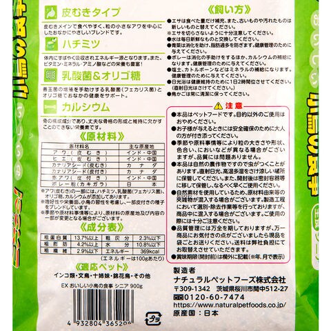 NPF エクセル おいしい小鳥の食事 シニア 900g 主食 セキセインコ オカメインコ 小動物用品 鳥 インコ 小鳥 小型インコ セキセイインコ セキセイ 文鳥 十姉妹 綿花鳥 オカメインコ マメルリハ ジュウシマツ カナリア ブンチョウ フィンチ オカメ コザクラ ボタン サザナミインコ サザナミ キンカチョウ 錦華鳥 アワ 粟 ヒエ 稗 キビ 黍 カナリアシード粉 蜂蜜 ハチミツ 主食 シード シード食 穀類 穀物 カキガラ ボレー ボレー粉 カキ殻 牡蠣殻 kak y25m09 20250925 4932804365206 シニア 老鳥 鳥用品
