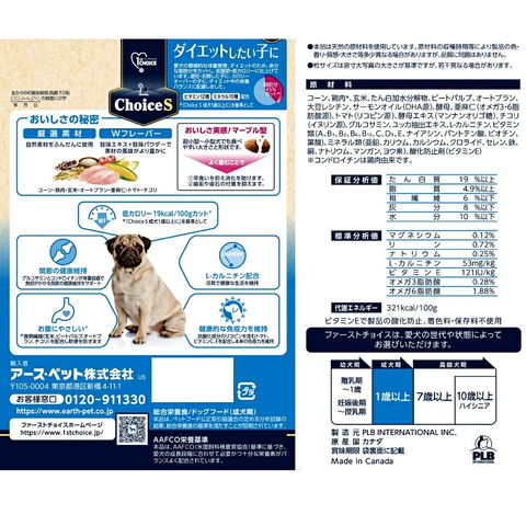 メーカー画像 4994527955508 ドッグフード ファーストチョイス ChoiceS ダイエットしたい子に 成犬1歳以上に 2.2kg 犬 いぬ DOG イヌ用 犬用 愛犬 愛犬用 犬フード イヌフード ご飯 ドライフード ドライ カリカリ 総合栄養食 ダイエット 体重管理 減量 低カロリー 低脂肪 避妊去勢 マーブル型 超小型犬 小型犬 消化 歯石 歯垢 2袋入り 20250807 y25m08 kak フード