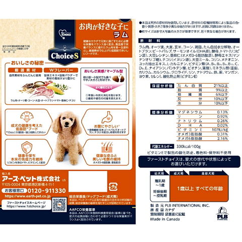 メーカー画像 4994527956406 ドッグフード ファーストチョイス ChoiceS お肉が好きな子に ラム 成犬1歳以上 2.4kg 犬 いぬ DOG イヌ用 犬用 愛犬 愛犬用 犬フード イヌフード ご飯 ドライフード ドライ カリカリ 総合栄養食 高品質 栄養バランス ラム肉 厳選素材 低脂肪 皮膚 被毛ケア 毛艶 維持 マーブル型 超小型犬 小型犬 食べやすい 大きさ 形状 歯石 歯垢 予防 消化 早食い防止 2袋入り 20250807 y25m08 kak フード