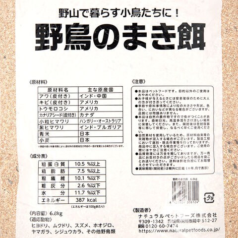NPF 野鳥のまき餌 6.8kg 4932804306124. 野鳥 撒餌 撒き餌 まき餌 小動物 鳥 トリ フード 鳥フード 鳥用フード 野鳥用フード 野鳥のえさ 野鳥の餌 餌 えさ トウモロコシ アワ ヒマワリ カナリアシード 米 ヒヨドリ ムクドリ スズメ ウグイス ホオジロ ヤマガラ シジュウカラ オオルリ 小型の野鳥 野鳥観察 野鳥の観察 バードウォッチング 庭先 ベランダ 国産 日本産 npfnatural 20250911 y25m09 ngtk