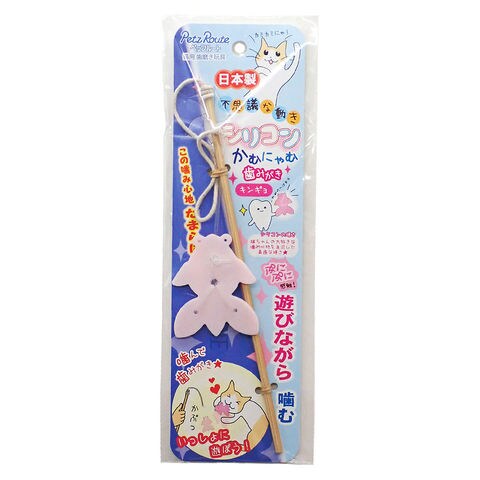 | 特長 | ●遊びながら噛める、程よい噛み心地のシリコン歯みがきおもちゃです。 ●程よい厚みと硬さのモチーフにシリコン紐が結ばれており、ぷるぷる動かして誘って噛ませることが出来ます。 |