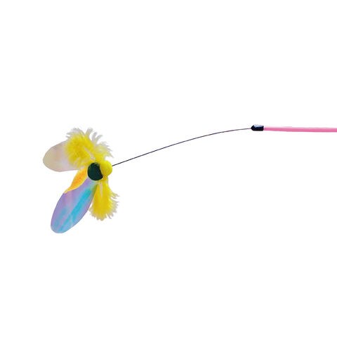 | 特長 | ●伸縮する棒の先におおきなオーロラフィルムのハネがついた大ぶりのモチーフの猫じゃらしです。 ●天然羽根の翼を広げた横に広いパピヨンが本能をくすぐります。 ●カシャカシャ音とキラキラ光と見やすい色で猫ちゃんの狩猟本能を刺激します。 |