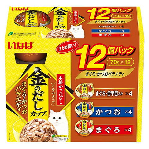 4901133622014 2250003566937 いなば 金のだし カップ 12個パック まぐろ・かつおバラエティパック 70g×12個 キャットフード ウェットフード 猫フード 一般食 20250820 y25m08 ktym 8個 まぐろ 鮪 マグロ 魚 さかな フィッシュ かつお 鰹 カツオ バラエティ キャット フード ウェット ウエットフード ねこフード ネコフード ねこ ネコ 猫 CAT 愛猫 複数売り