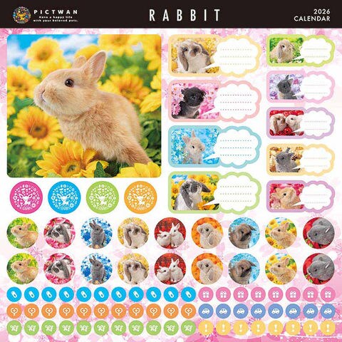 2026年 壁掛けカレンダー PICTWAN ラビット カレンダー 4589860482097 20250815 y25m09 ktym キュート 可愛い 写真 カラフル 花 植物 インパクト 書き込み しやすい インテリア 華やか フォトシール スケジュールシール オリジナルシール 壁掛け用 ブックレット式 中とじ スマホ壁紙 プレゼント うさぎ ウサギ 表情 L版 大判 部屋 28ページ フック穴 フォトグラファー シール シールセット 画像 ダウンロード QRコード アニマル 小動物 animal うさぎ 兎 ウサギ ピクトワン