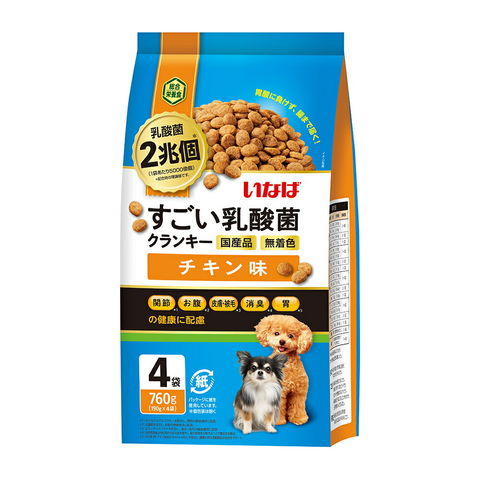 メーカー画像 いなば すごい乳酸菌クランキー 760g (190g×4袋) チキン味 8個 4901133721700 2250003574246 20250829 y25m08 ktym 犬フード 主食 総合栄養食 ドッグフード 犬 イヌ 犬用 いぬ用 成犬 えさ ごはん ご飯 餌 ドライ コラーゲン グルコサミン 国産 日本産 いぬ イヌフード いぬフード ドッグ DOG 愛犬 日本 複数売り
