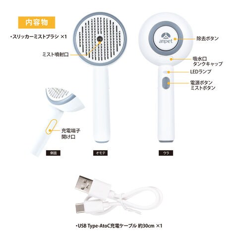 | セット内容 | スリッカーミストブラシ×1個 USB Type-AtoC充電ケーブル 約30cm×1個 |