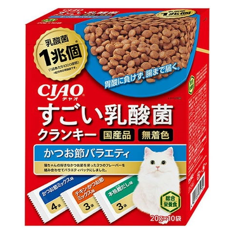 CIAO すごい乳酸菌クランキー かつお節バラエティ 20g×10袋 12個 2250003575762 4901133651700 20250903 y25m09 ktym キャットフード ドライフード いなば チャオ 乳酸菌 総合栄養食 成猫 成猫用 キャット ドライ フード 猫フード ネコフード ねこ 猫 CAT 愛猫 ごはん ご飯 えさ 餌 栄養食 鰹節 カツオ 鰹 さかな 魚 フィッシュ 複数売り