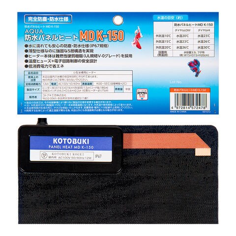 ヒーター kotobuki heaterhon コトブキ工芸 AQUA 防水パネルヒート MD K-150 12W 温度可変タイプ パネルヒーター 出力 調整 保温器具 保温 保温用品 安全装置 最薄 省エネ 寿 暖房 あたため 冬 温度管理 置くだけ 敷くだけ 引くだけ アクアリウム アクア アクアリウム用品 アクア用品 パネヒ 防水 水槽 小型水槽 コレクト水槽 淡水 海水 メダカ 金魚 観賞魚 ベタヤドカリ 熱帯魚 海水魚 淡水魚 暖かい あったかい 防水 防塵 水洗いOK 水洗い可能 4972814572478 kak y25m09 20250930 bnr2511kotopanel bnr2512kotopahe