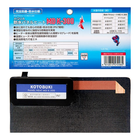 ヒーター kotobuki heaterhon コトブキ工芸 AQUA 防水パネルヒート MD K-300 24W 温度可変タイプ パネルヒーター 出力 調整 保温器具 保温 保温用品 安全装置 最薄 省エネ 寿 暖房 あたため 冬 温度管理 置くだけ 敷くだけ 引くだけ アクアリウム アクア アクアリウム用品 アクア用品 パネヒ 防水 水槽 小型水槽 コレクト水槽 淡水 海水 メダカ 金魚 観賞魚 ベタヤドカリ 熱帯魚 海水魚 淡水魚 暖かい あったかい 防水 防塵 水洗いOK 水洗い可能 4972814572485 kak y25m09 20250930 bnr2511kotopanel bnr2512kotopahe