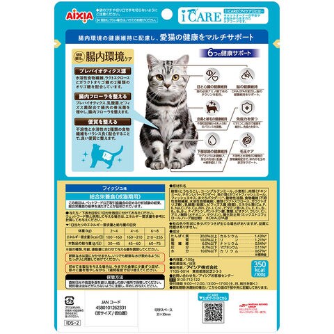 メーカー画像 アイケア iCARE キャットドライ 100g フィッシュ味 4580101262331 猫 ねこ キャット cat ねこ用 猫フード キャットフード ペットフード カリカリ 猫餌 猫えさ ドライフード ケアフード 成猫 腸内環境 腸内フローラ 便通 便質 目 眼 心臓 皮膚 被毛 下部尿路 健康維持 脳 脳の発達 免疫力 毛玉の排泄 ヘアボール 毛玉ケア プレバイオティクス オリゴ糖 乳酸菌 水溶性食物繊維 食物繊維 DHA EPA タウリン フィッシュ 魚 魚介 お試しパック 無著色 着色料不使用 無香料 香料不使用 国産 日本産 20251007 y25m10 ngtk ドライ フード icare iCARE