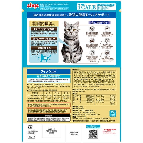 メーカー画像 アイケア iCARE キャットドライ 400g フィッシュ味 4580101262362 猫 ねこ キャット cat ねこ用 猫フード キャットフード ペットフード カリカリ 猫餌 猫えさ ドライフード ケアフード 成猫 腸内環境 腸内フローラ 便通 便質 目 眼 心臓 皮膚 被毛 下部尿路 健康維持 脳 脳の発達 免疫力 毛玉の排泄 ヘアボール 毛玉ケア プレバイオティクス オリゴ糖 乳酸菌 水溶性食物繊維 食物繊維 DHA EPA タウリン フィッシュ 無著色 着色料不使用 無香料 香料不使用 国産 日本産 20251007 y25m10 ngtk ドライ フード icare iCARE line2512aixia
