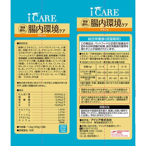 アイケア iCARE キャットドライ 1.2kg(300g×4袋) チキン味 関東当日便