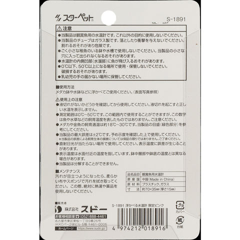 | ご注意 | ※本品は観賞魚用の水温計です。目的以外の用途では使用しないでください。 |