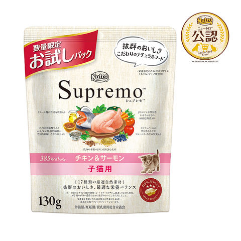 ニュートロ シュプレモ 子猫用 チキン&サーモン 130g プロモーションパック 4902397876182 20250909 y25m09 ktym キャットフード 子猫 仔猫 こねこ 猫用品 猫 ねこ えさ 餌 フード 鶏 トリ カリカリ 自然 着色料 不使用 厳選 自然素材 猫フード 猫用ドライフード 猫餌 猫えさ プレミアムフード 皮膚 皮ふ 被毛 毛並み 毛ヅヤ 高品質 食いつき 食べつき 栄養バランス 肉 鶏肉 鳥肉 Nutro Nutoro お試し ねこフード キャット CAT 愛猫 お試しパック サーモン 鮭 さかな 魚 フィッシュ ドライ melma2306trycfd
