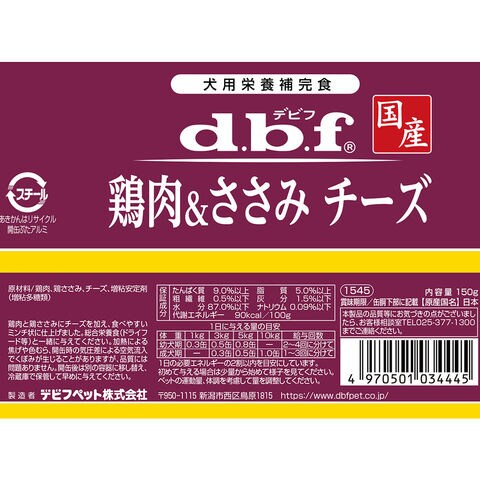 メーカー画像 デビフ 鶏肉&ささみ チーズ 150g×24 缶詰 犬 ウェットフード ドッグフード 4970501034445 いぬ イヌ ドッグ DOG 愛犬 ウェット ウエットフード ウエット フード 犬フード イヌフード いぬフード 鶏肉 鶏 肉 チキン 鶏ささみ 鶏ササミ とりささみ ササミ 缶 国産 日本産 日本 発色剤不使用 食物繊維 カルシウム ミンチ状 栄養補完食 補完食 2250003584702 複数売り まとめ買い 20250924 y25m09 ngtk