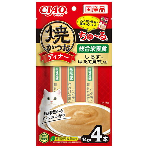 2250003585358 メーカー画像 いなば 焼かつおディナーちゅ~る しらす ほたて貝柱入り 14g×4本×48 4901133478444 20250926 y25m09 ktym 猫 ねこ 猫用 ねこ用 キャット cat 猫フード キャットフード ペットフード フード 餌 エサ ごはん ウェットフード ウエットフード ウェット ウエット トッピング 総合栄養食 成猫 成猫用 ちゅ~る ちゅーる ほたて 帆立 貝柱 ネコ ネコ用 CAT 愛猫 ねこフード ネコフード えさ ご飯 栄養食 複数売り