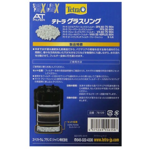 ●テトラ フリーパワーフィルター FPX-60、VAX-60用の物理、生物ろ過材です。 【グラスリング】 ●連続多孔質構造が水流を分散し、ろ過能力がアップします。 ●バクテリアの繁殖を促す生物ろ過を行うと同時に、様々な方向を向いた穴が大きなゴミなどを物理的にろ過しながら、水の流れを分散させて、フィルター全体に行き渡らせます。 ●表面の汚れが落ちなくなったら交換をおすすめします。 【粗目スポンジマット】 ●目の粗いスポンジ表面でゴミを物理的にろ過します。 ●スポンジにろ過バクテリアを付着、繁殖させ、有機物(残餌、フン、枯葉など)を生物ろ過します。 ●最低6ヶ月に1度の交換をおすすめします。 【カーボンマット/ウールセット】 ●物理的なゴミをキャッチ、ニオイ、飼育水の着色汚れを吸着します。 ●カーボンがにごり、黄ばみ、悪臭を吸着します。 ●目の細かい素材で、細かい汚れをキャッチします。 ●最低1ヶ月に1度交換してください。 |