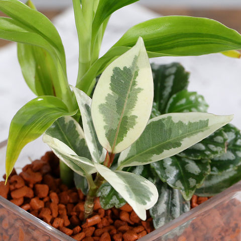 (観葉植物)ハイドロカルチャー ミニ観葉3種の寄せ植え ブロックグラス(1個) セラミス 鉢植え おしゃれ 室内 プレゼント