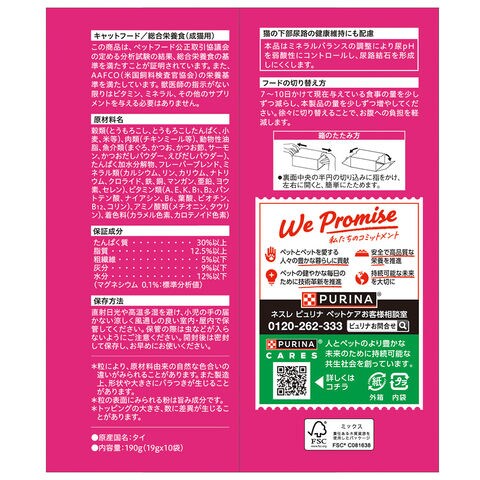 | ご注意 | ※本品は成猫用です。対象年齢以外の猫には与えないでください。 |