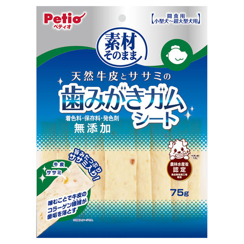 メーカー画像 犬 おやつ ペティオ 素材そのまま 天然牛皮とササミの歯みがきガム シート 75g 4903588146107 20251031 y25m10 ktym 犬 いぬ イヌ DOG 愛犬 イヌ用 犬用 いぬ用 ドッグ dog 犬おやつ おやつ 間食 ドッグフード 犬フード イヌフード いぬフード フード 素材 そのまま 天然 牛皮 ささみ ササミ とりささみ 鶏ササミ 鶏ささみ 鶏肉 鶏 肉 チキン 歯みがき ガム デンタルケア デンタル ケア 歯磨き 健康維持 健康 維持 歯と歯茎の健康 着色料不使用 保存料不使用 発色剤不使用