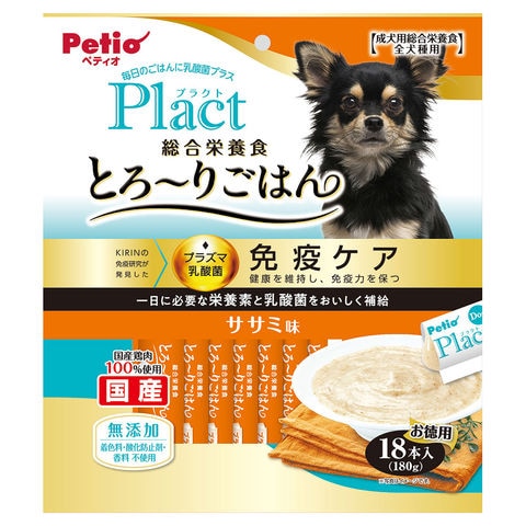 メーカー画像 犬 おやつ ペティオ プラクト 総合栄養食 無添加 とろーりごはん ササミ味 18本入 4903588146237 20251024 y25m11 ktym 犬 いぬ イヌ DOG 愛犬 イヌ用 犬用 いぬ用 ドッグ dog ドッグフード 犬フード イヌフード いぬフード フード 栄養食 ご飯 ごはん えさ エサ 餌 ささみ ササミ 鶏ササミ 鶏ささみ とりささみ 鶏肉 鶏 肉 チキン 乳酸菌 プラス KIRIN プラズマ乳酸菌 健康維持 免疫力 免疫ケア ペースト ペースト状 トッピング 水分補給 大容量パック 大容量 着色料不使用 酸化防止剤不使用 香料不使用 ウエットフード ウェットフード ウエット ウェット