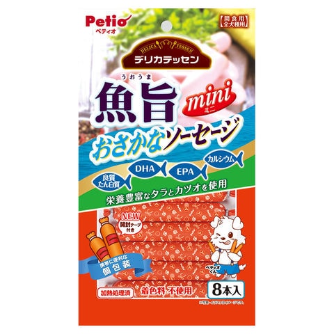 メーカー画像 犬 おやつ ペティオ デリカテッセン 魚旨 おさかなソーセージ 8本入 4903588146442 20251024 y25m11 ktym 犬 いぬ イヌ DOG 愛犬 イヌ用 犬用 いぬ用 ドッグ dog 犬おやつ おやつ 間食 ドッグフード 犬フード イヌフード いぬフード フード お魚 おさかな さかな 魚 フィッシュ ソーセージ たら タラ 鱈 かつお カツオ 鰹 旨味 栄養 食べきりサイズ DHA EPA カルシウム タンパク質 たんぱく質 小型犬 シニア犬 高齢犬 高齢 老犬 柔らかい トッピング 投薬補助 個包装 着色料不使用
