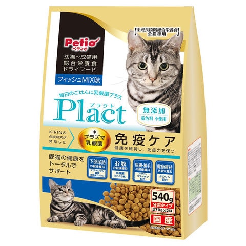 メーカー画像 猫 ペティオ プラクト キャット ドライフード 幼猫~成猫用 フィッシュミックス味 540g 4903588146282 20251028 y25m11 ktym ネコ ねこ キャット CAT 愛猫 キャットフード フード ネコフード 猫フード ねこフード 猫用 ねこ用 ネコ用 無添加 まぐろ マグロ 鮪 魚 さかな フィッシュ 総合栄養食 栄養食 乳酸菌 KIRIN プラズマ乳酸菌 健康維持 免疫力 免疫ケア 国産 日本産 日本 着色料不使用 ドライフード 幼猫 成猫 分包 オールステージ ドライ フード かつお 鰹 カツオ